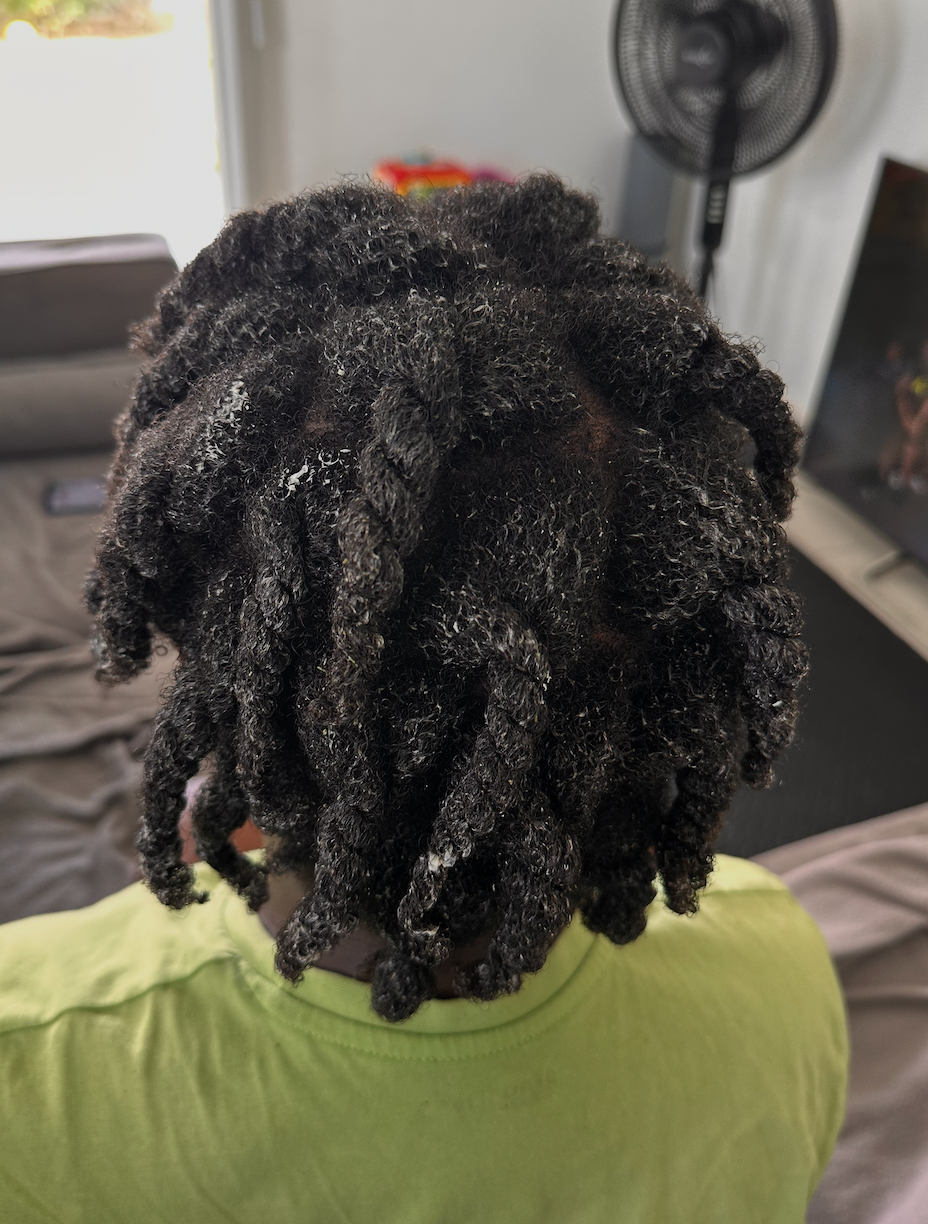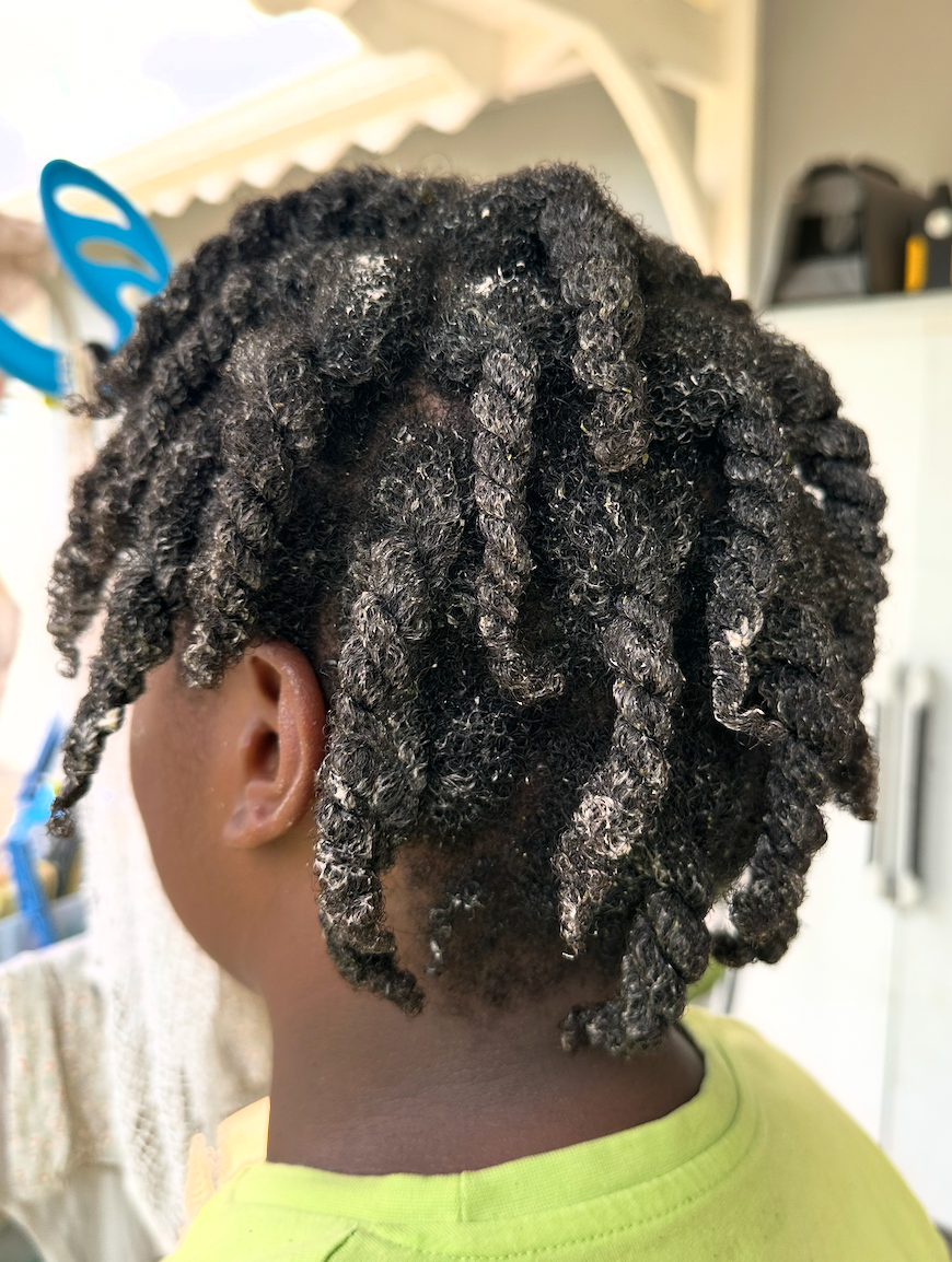 Ici, on réalise un nettoyage en profondeur du cuir chevelu et des longueurs, avec un soin clarifiant ou une détox 100 % naturelle (recette fournie oralement), suivi d’une routine adaptée et douce.